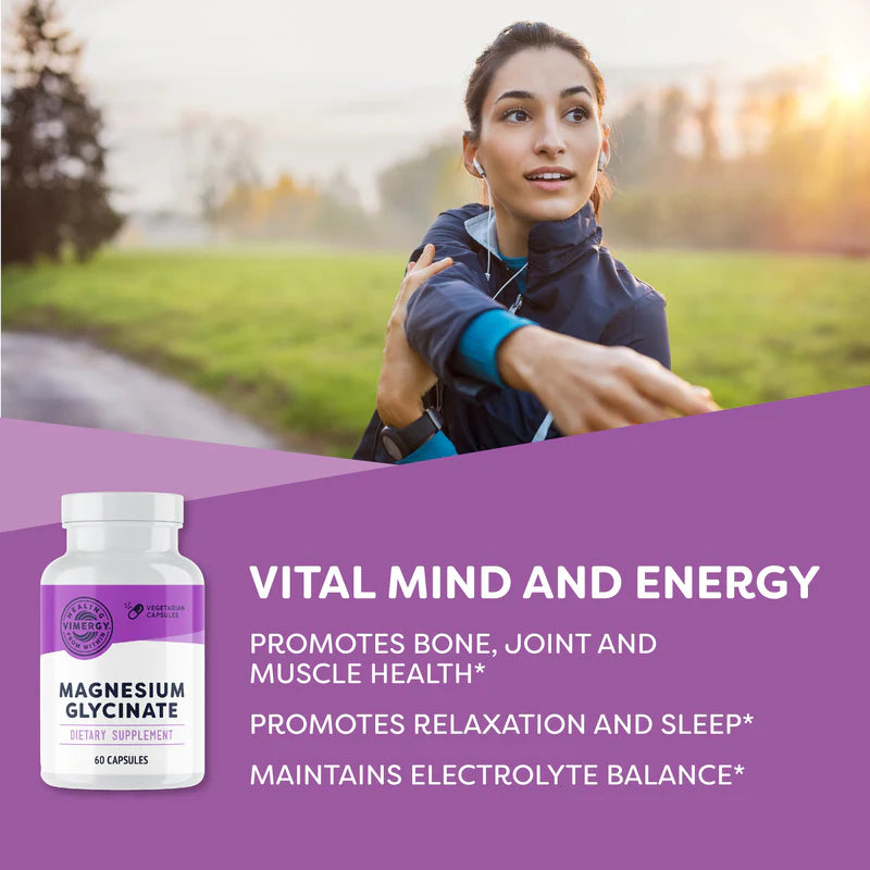 El glicinato de magnesio de Vimergy es un "magnesio inteligente" que imita el que se encuentra de forma natural en los alimentos, mejorado con jengibre y